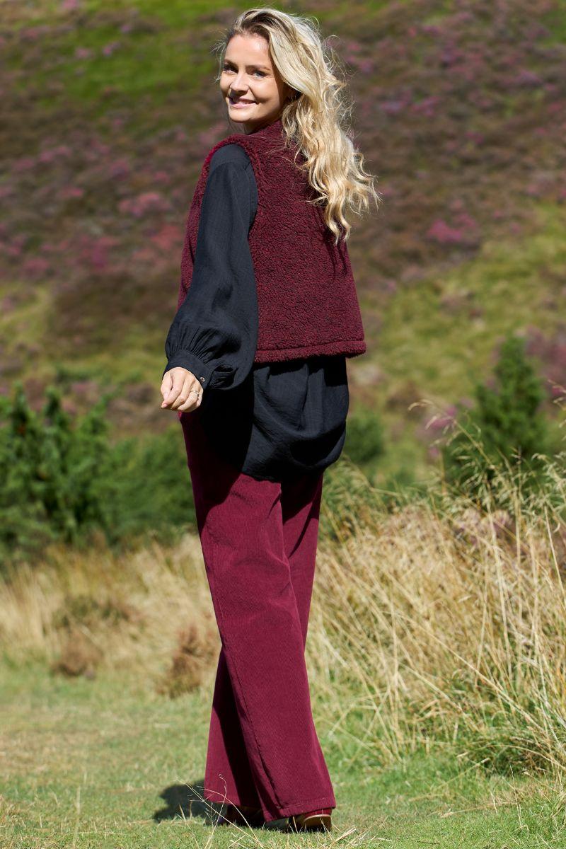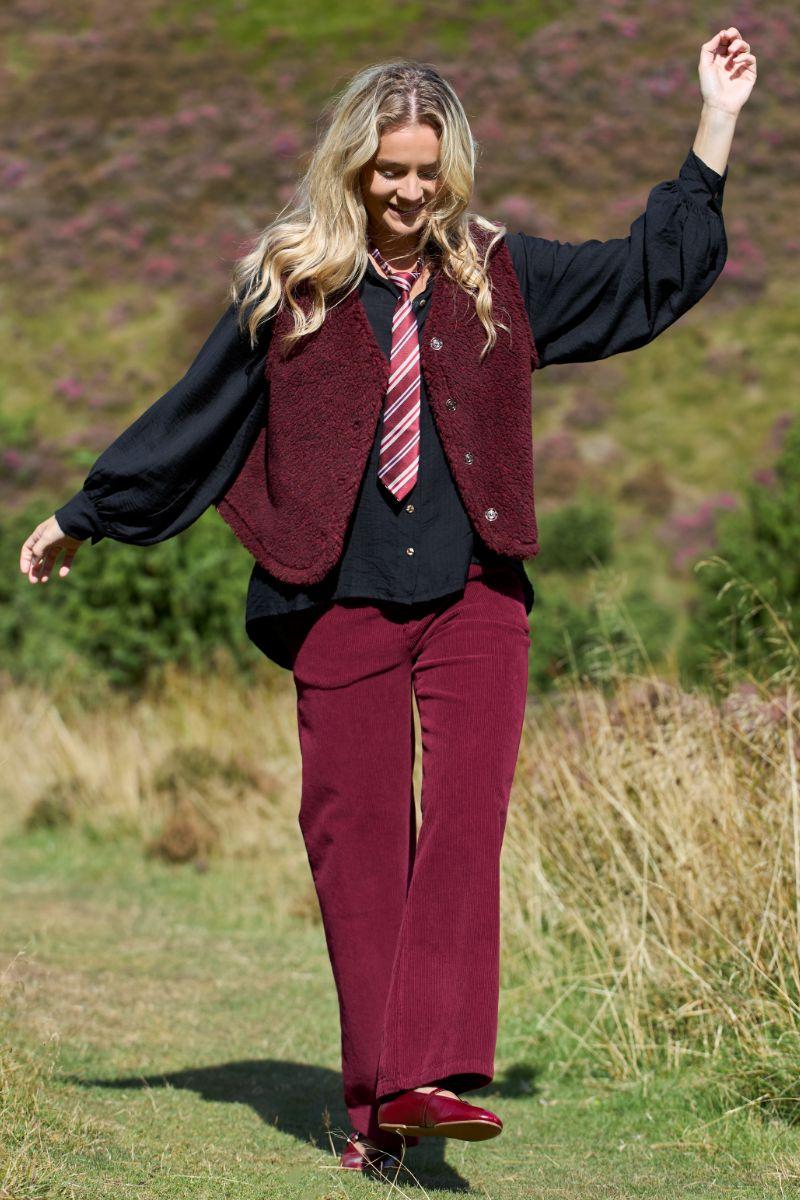 Cora Corduroy Box Pant | Wein | Bukser fra Black Colour
