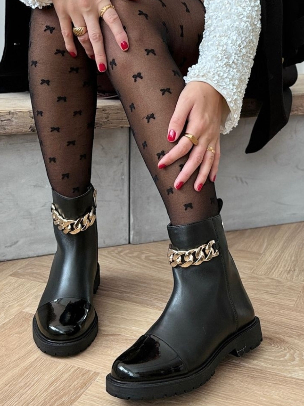 Blumenaugen | Schwarzgold-Lack