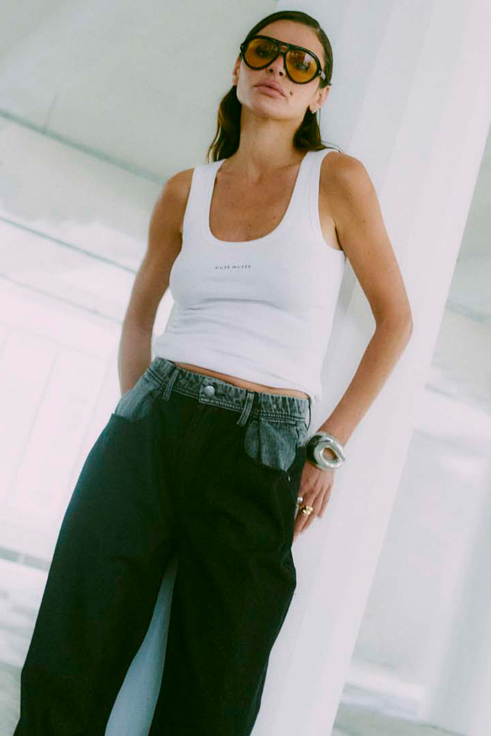 - Loose-Fit-Jeans: Der Komfort und der Schnittstil stehen im Fokus, Sie müssen Loose-Fit-Jeans verwenden und sie tragen. Da es sich um eine modische und moderne Silhouette handelt, die mit Sneakers oder Stövlern perfekt für einen lässigen Look ist.