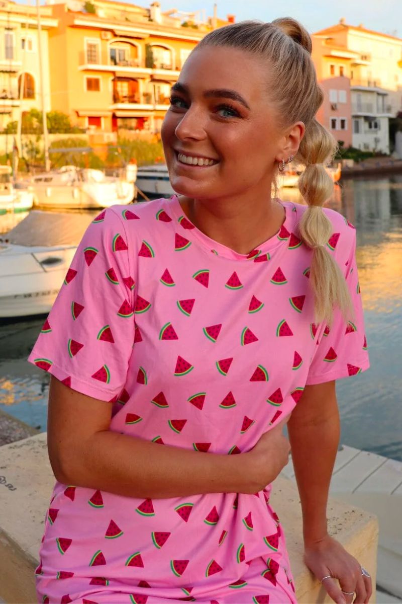 Alma T-Shirt-Kleid | Rosa Wassermelone