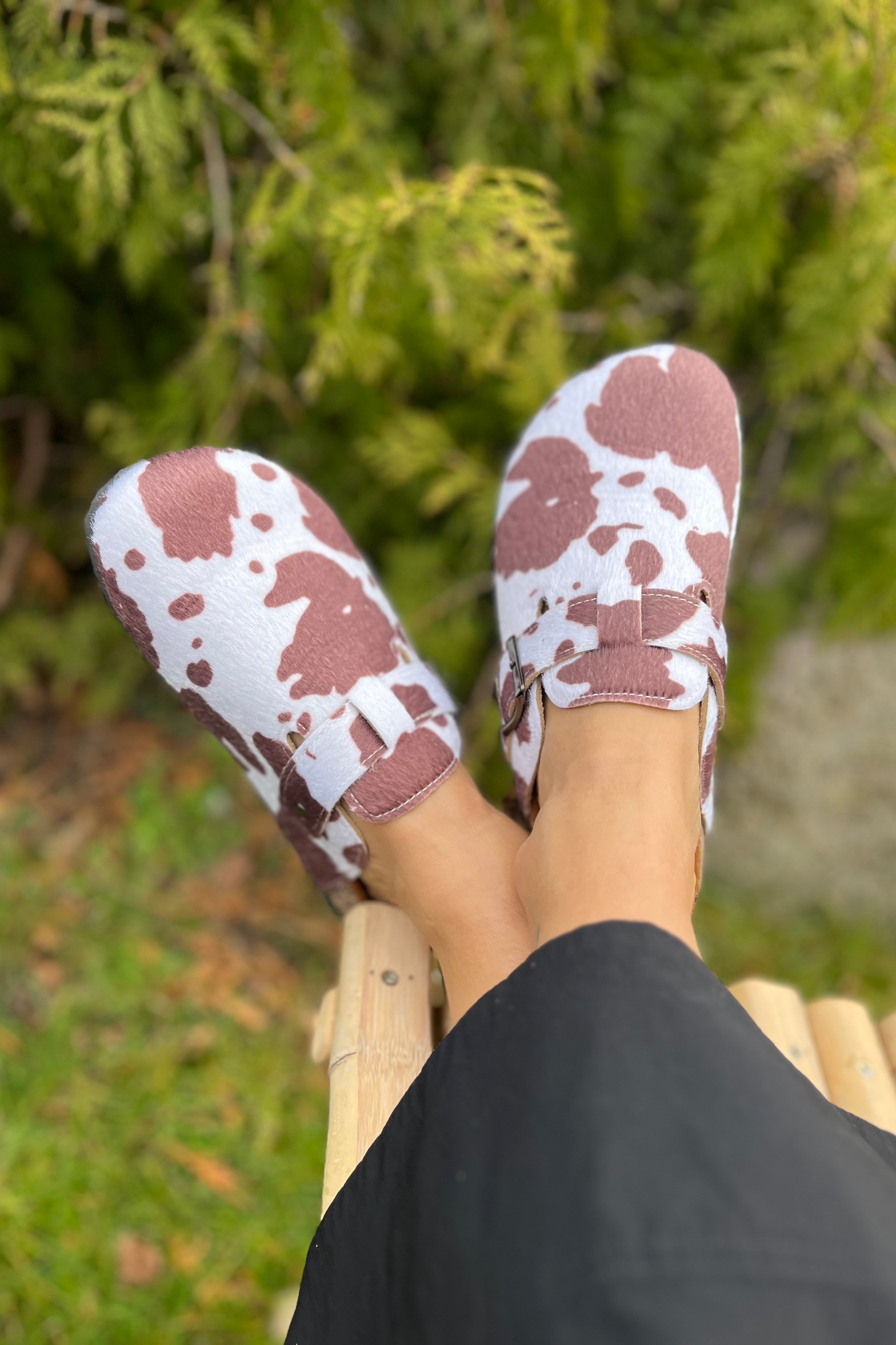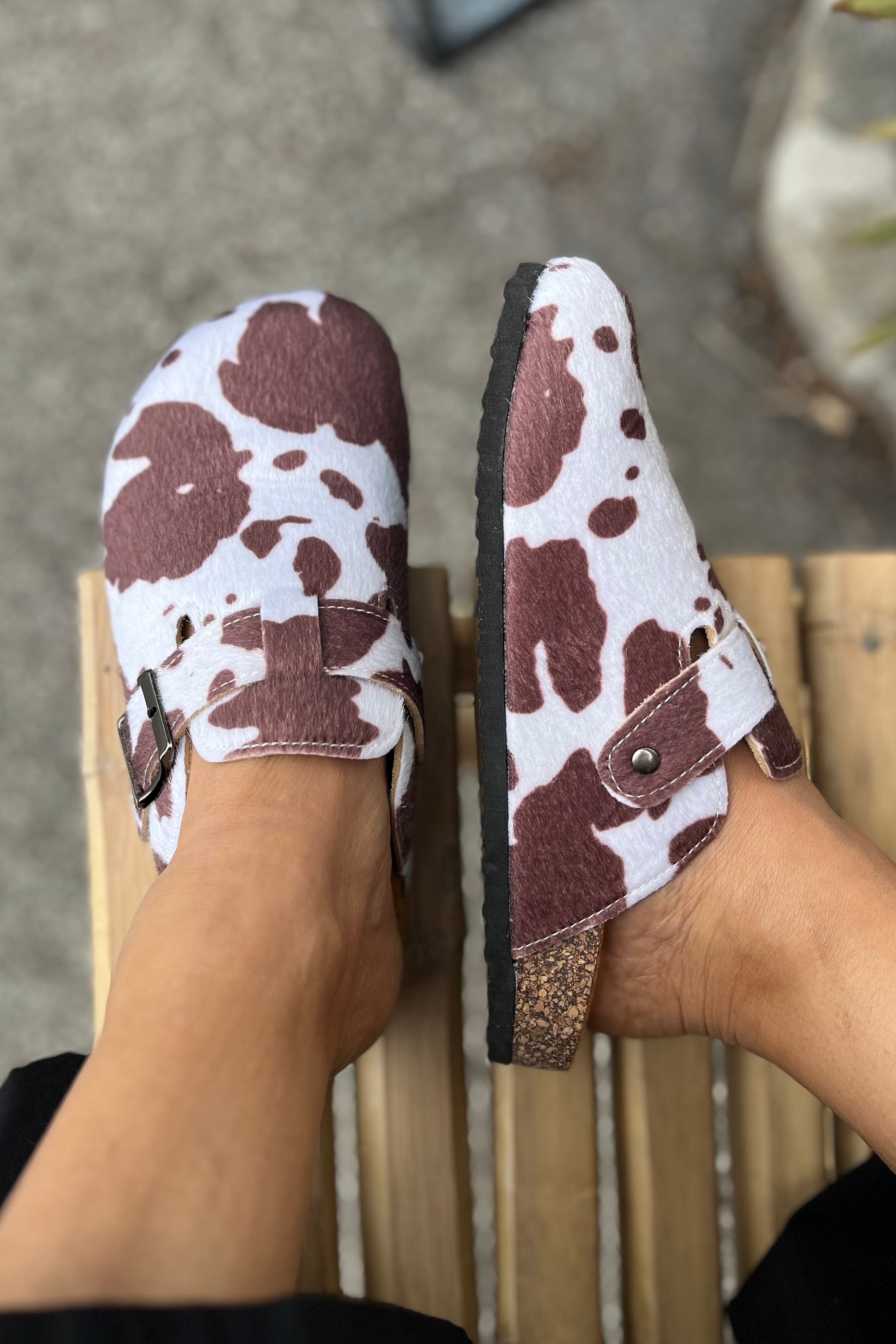 Slipper mit Kuh-Print | Kuhbraun