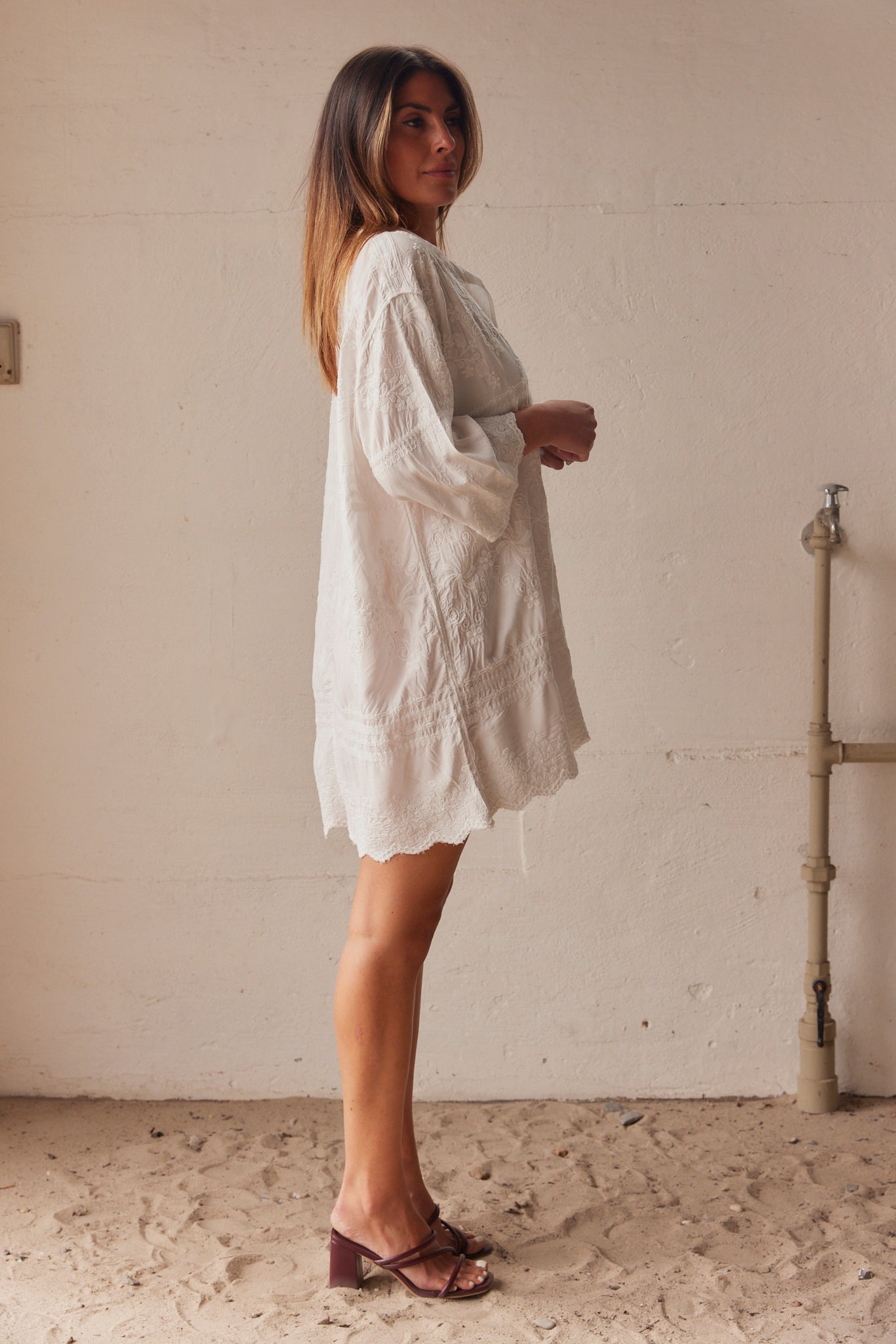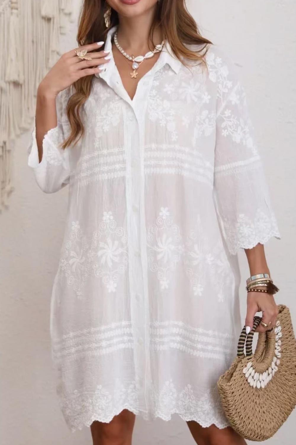 Embla Besticktes Hemdkleid | Weiß