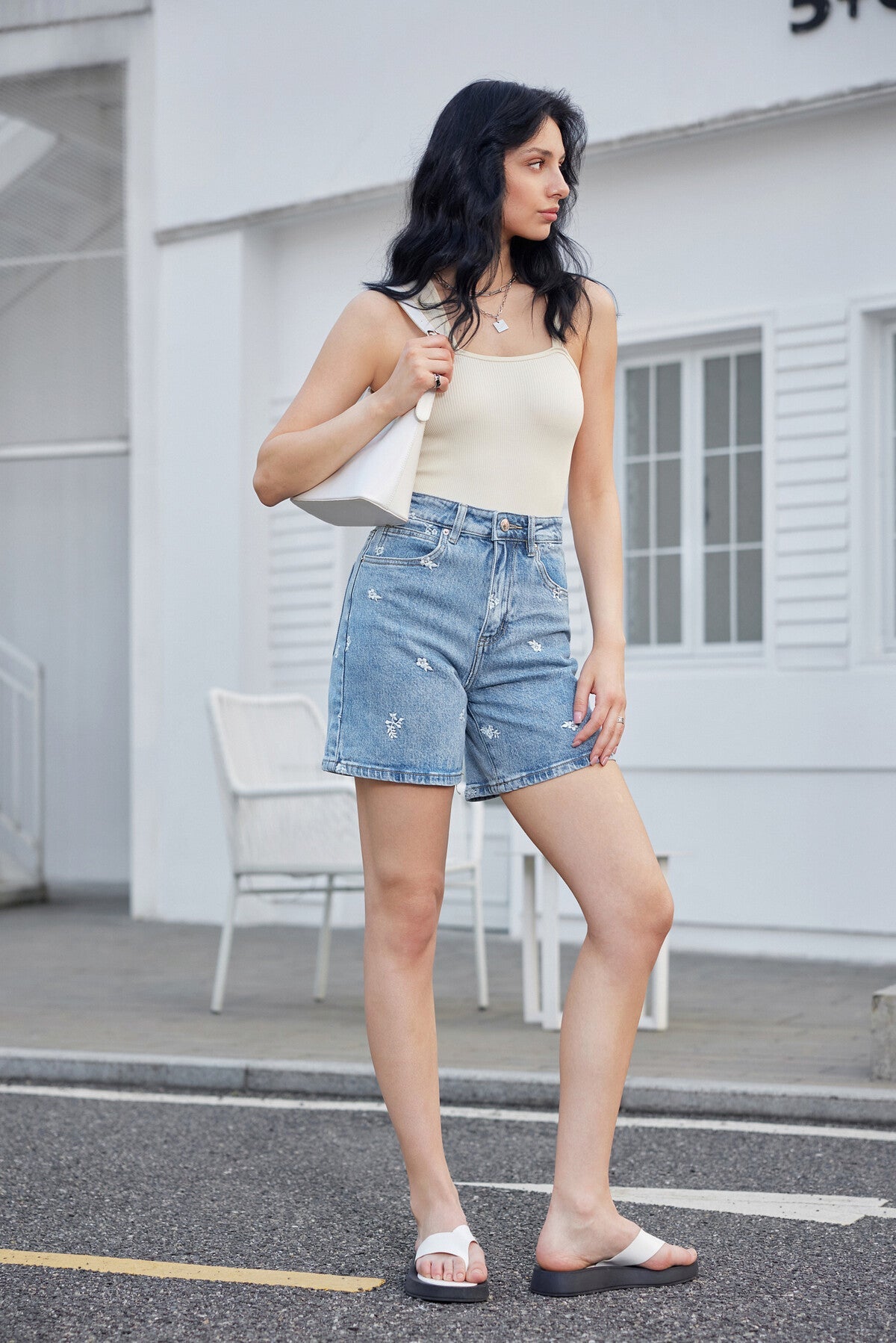 Bestickte Jeansshorts | Jeans