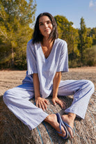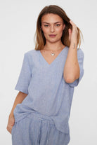 Lavabluse | Offwhite-Nebelblau