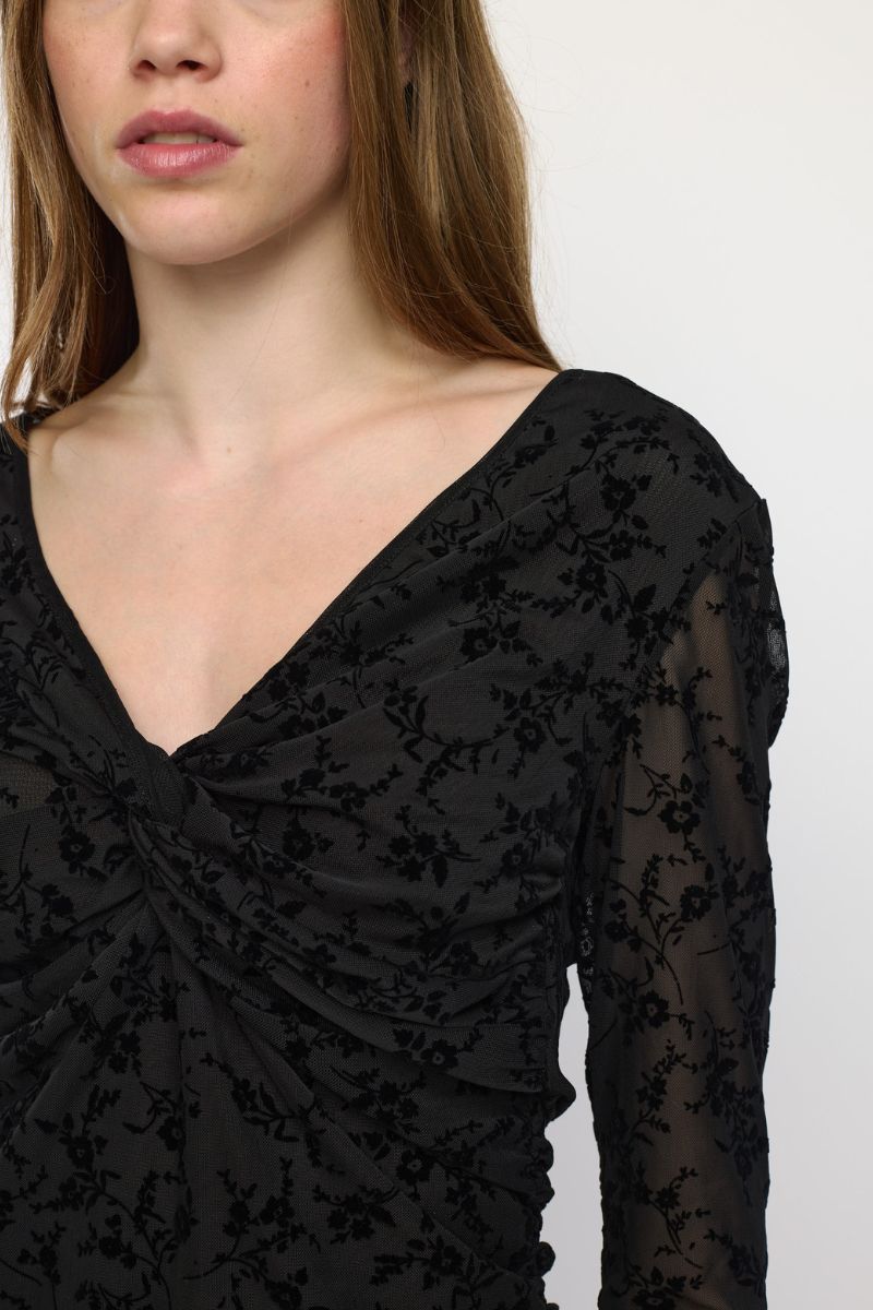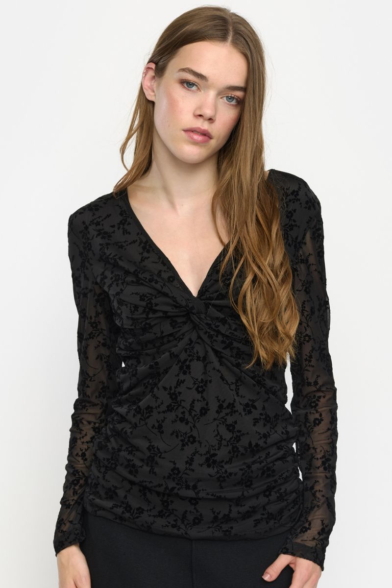 Srtalula Twist V-Ausschnitt Top | Schwarz