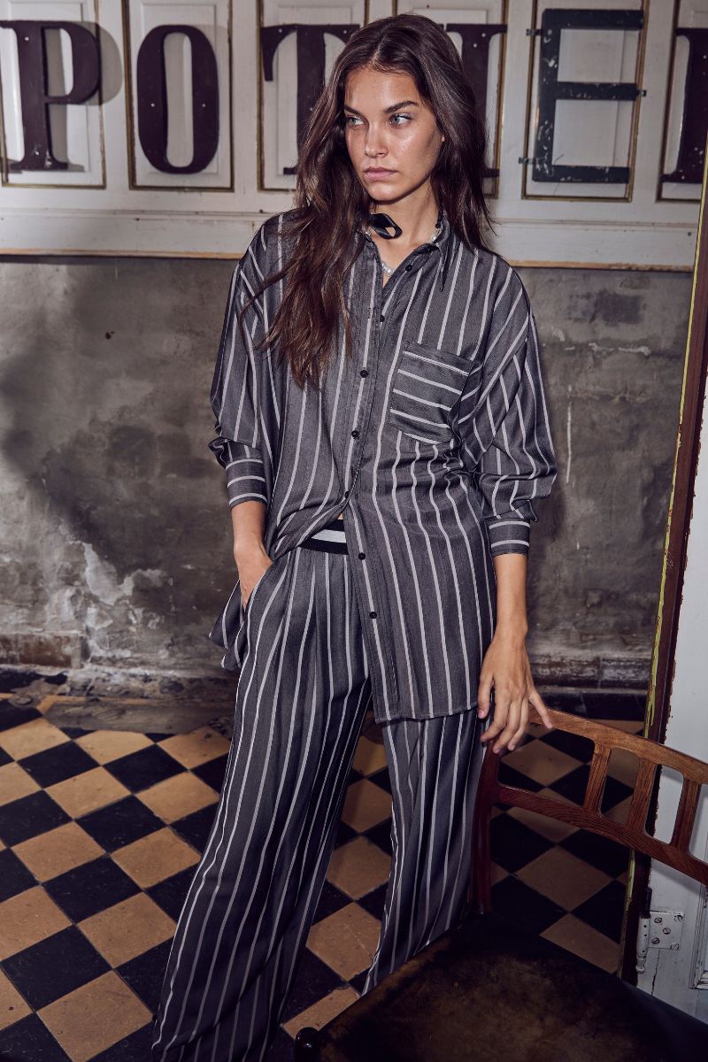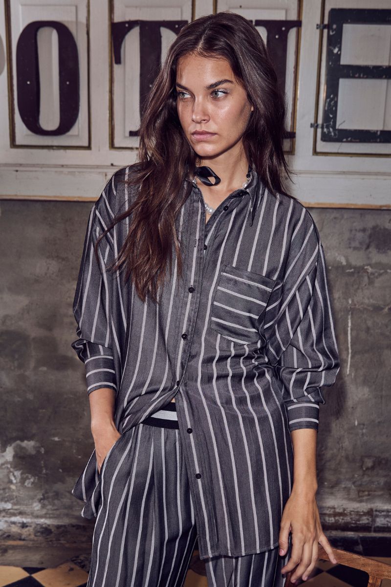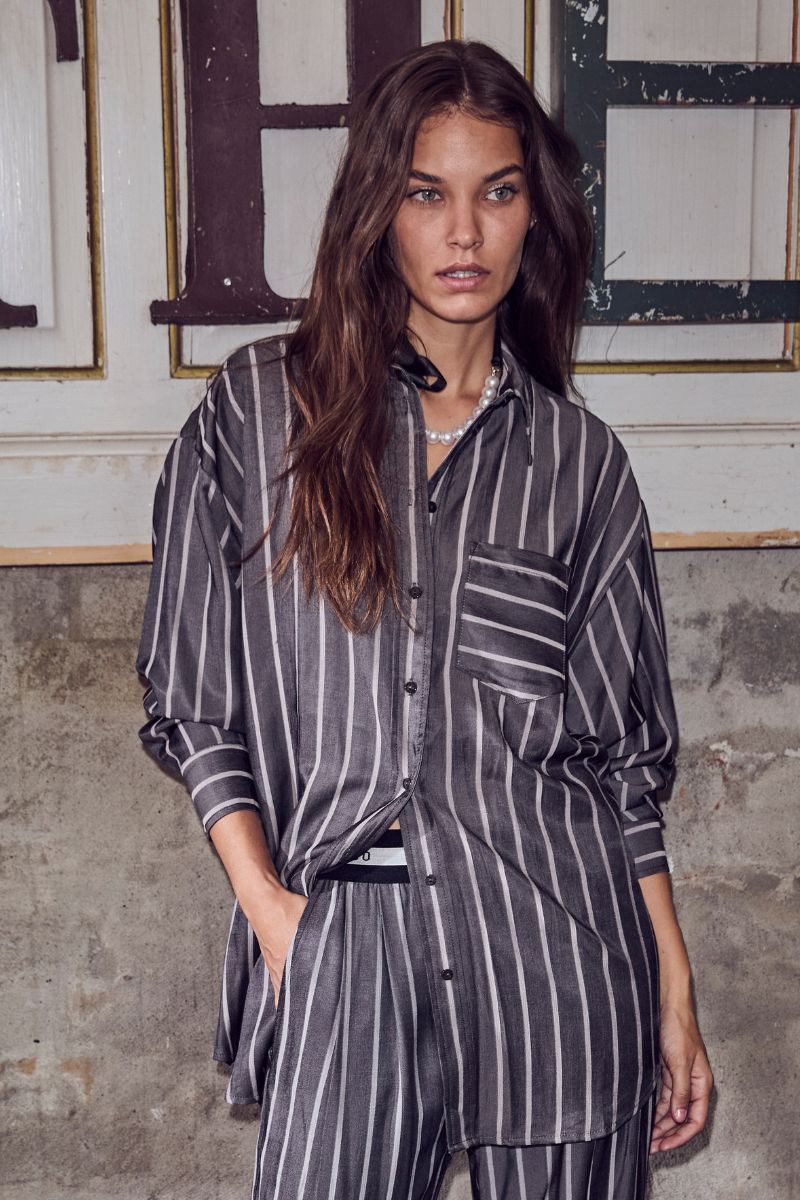 Sue Stripe Oversize Shirt 35696 | Schwarz